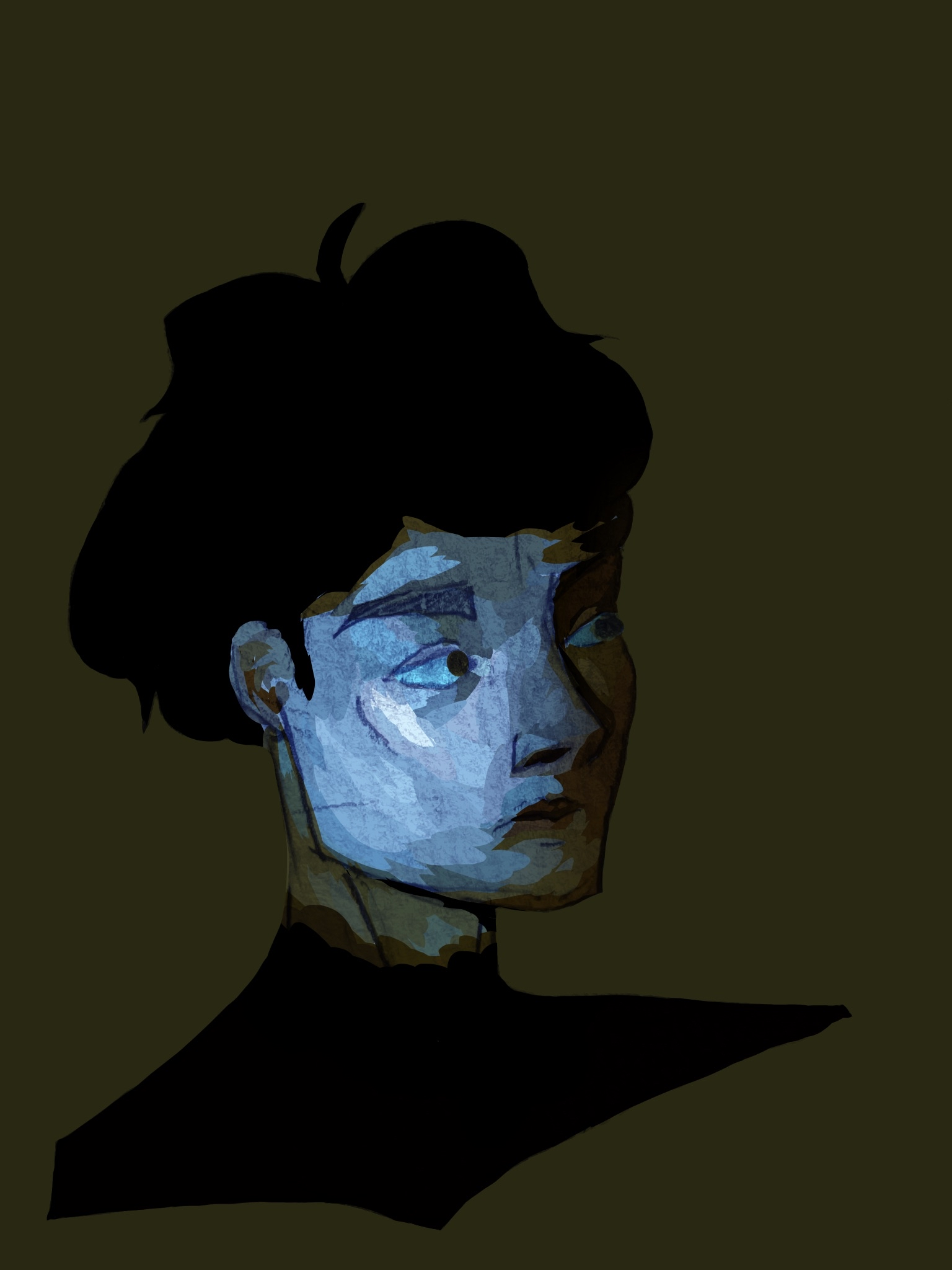 ⮝ Experiment with chiaroscuro. To be honest, I wasn't confident enough with the blacks in this one. Maybe I'll redo it one day. Fully digital.