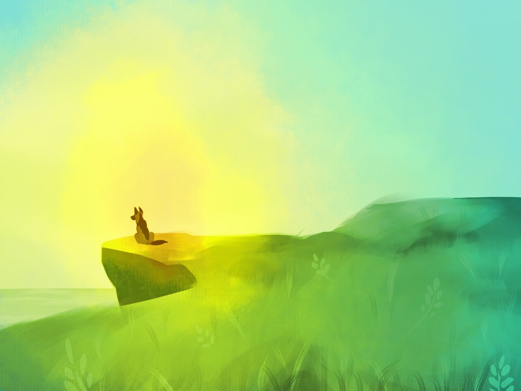 ⮝ Practice with using color to define the focal point. I really enjoy making landscapes with a little animal main character. Fully digital.